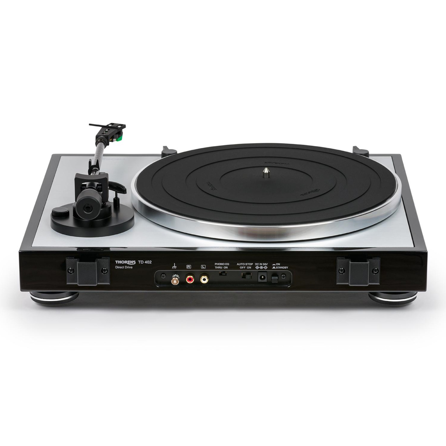 Thorens TD 402 DD je „out-of-the-box“ ihneď pripravený na prehrávanie s inovatívnym riešením. Veľmi pokojný systém priameho DD pohonu v kombinácii s komfortnými funkciami, ako je vstavaný phono predzosilňovač, automatické spustenie a automatického zastavenia na konci dosky.