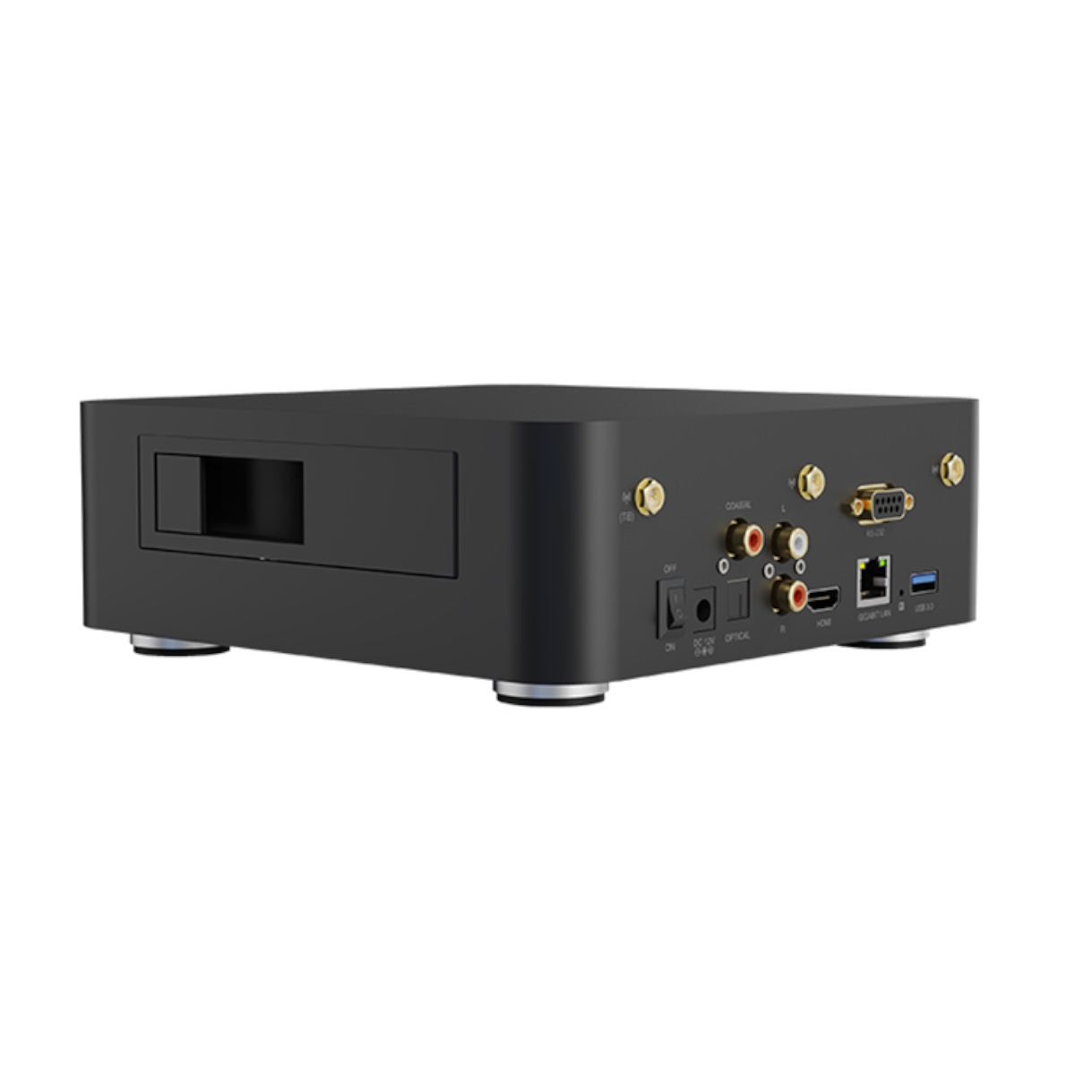 - Audio výstup: USB výstup, 1x optický výstup, 1x koaxiálny výstup, 1x RCA L/R výstup