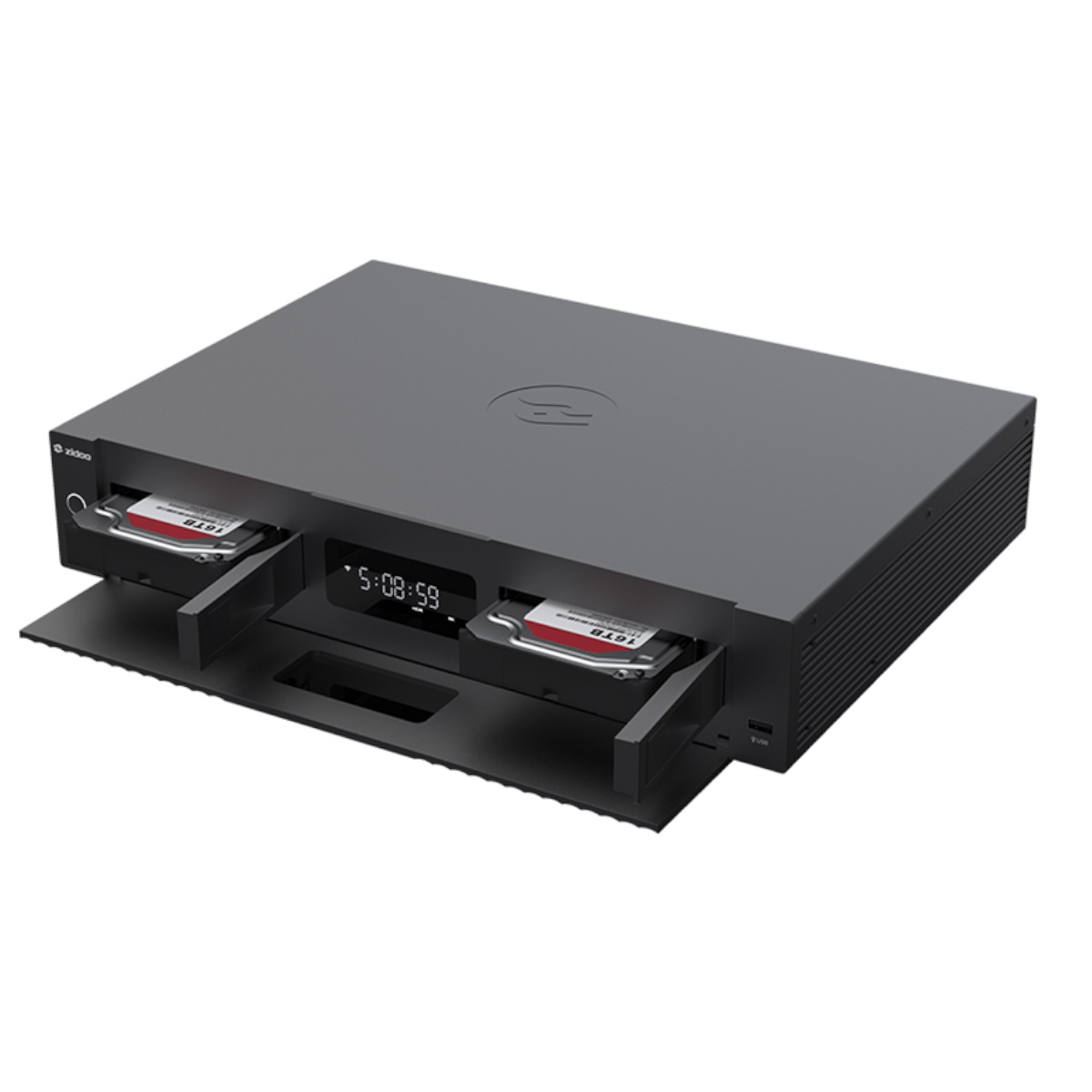 Dva sloty pre HDD podporujú až dva 16TB pevné disky. Prehrávač pojme teda až 32TB filmov, televíznych seriálov a hudobných súborov.